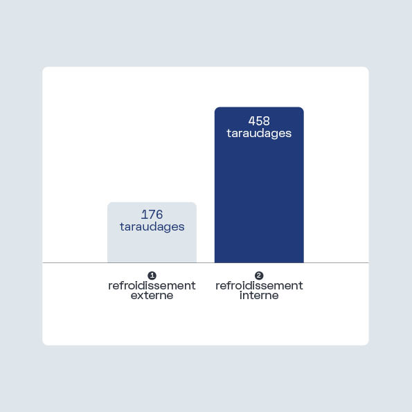 Nous y sommes parvenus : par rapport à deux mandrins synchronisés existants (1180 et 1310 bons filetages), nous avons pu augmenter le nombre de bons filetages à plus de 1700. Cela représente une augmentation de plus de 30 %.
